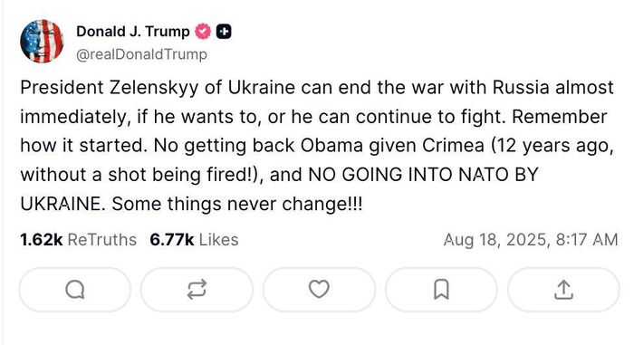 “Tin giả nói suốt ba ngày qua rằng tôi chịu ‘thất bại lớn’ khi để Tổng thống Nga Vladimir Putin tham dự một hội nghị thượng đỉnh ngay tại Mỹ. Thực tế, ông ấy muốn tổ chức ở nơi khác, và truyền thông biết rõ điều này. Nếu chúng tôi chọn địa điểm ngoài Mỹ, họ cũng sẽ nói đó là một thảm họa. Những kẻ đó thật bệnh hoạn!”, ông viết.