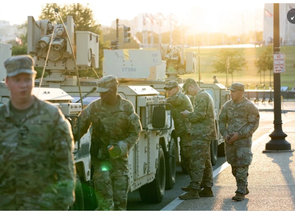 Từ đêm 12/8 (giờ Mỹ), các xe Humvee và binh sĩ Vệ binh Quốc gia đã xuất hiện dọc theo Quảng trường Quốc gia, chỉ một ngày sau khi Tổng thống Donald Trump ra lệnh liên bang hóa Sở Cảnh sát Thủ đô và trao cho lực lượng này “quyền làm bất cứ điều gì cần thiết” để trấn áp tội phạm.