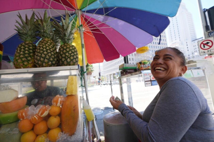 Một người dân mua thức uống làm mát cơ thể trong ngày nắng nóng ở Los Angeles hôm 19/8. Ảnh: AP