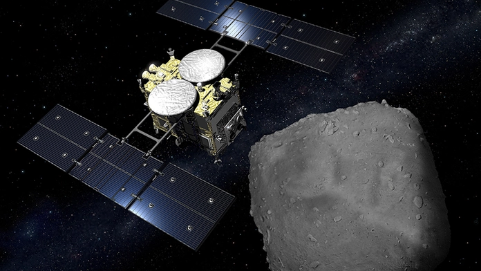 Ryugu và tàu vũ trụ Hayabusa-2 - Ảnh đồ họa: JAXA