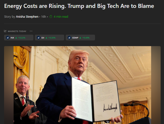 Trump và Đảng Cộng hòa đã hứa sẽ giảm chi phí cho người dân Mỹ. Tuy nhiên, bằng cách cắt giảm các ưu đãi về năng lượng sạch và khuyến khích các công ty công nghệ lớn nhanh chóng mở rộng cơ sở hạ tầng AI tiêu tốn nhiều năng lượng với sự giám sát tối thiểu, họ đã đẩy chi phí năng lượng lên cao ngất ngưởng. Và đây chỉ là một phần trong chương trình nghị sự rộng lớn hơn của Đảng Cộng hòa về việc bãi bỏ quy định và tư nhân hóa, ưu tiên lợi nhuận doanh nghiệp hơn phúc lợi công cộng.