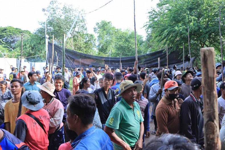 Dân Campuchia tập trung gần làng Ban Nong Chan, tỉnh Sa Kaeo, Thái Lan ngày 25/8. Ảnh: Lục quân Thái Lan