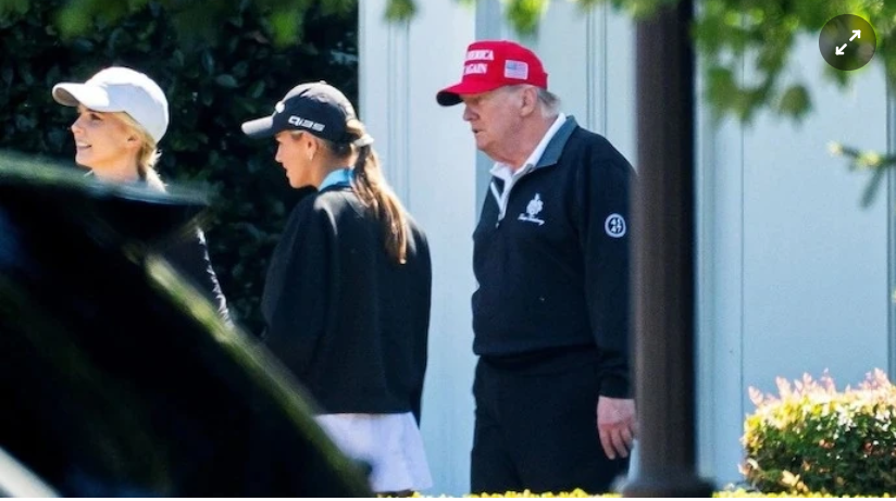 Vào khoảng 8h45 phút, ông được nhìn thấy trong trang phục áo polo trắng, quần đen, đội mũ đỏ in dòng chữ “MAGA”, cùng cháu gái Kai Trump và cháu trai Spencer Frederick Trump chuẩn bị tới câu lạc bộ golf Trump National ở bang Virginia, theo CNN.