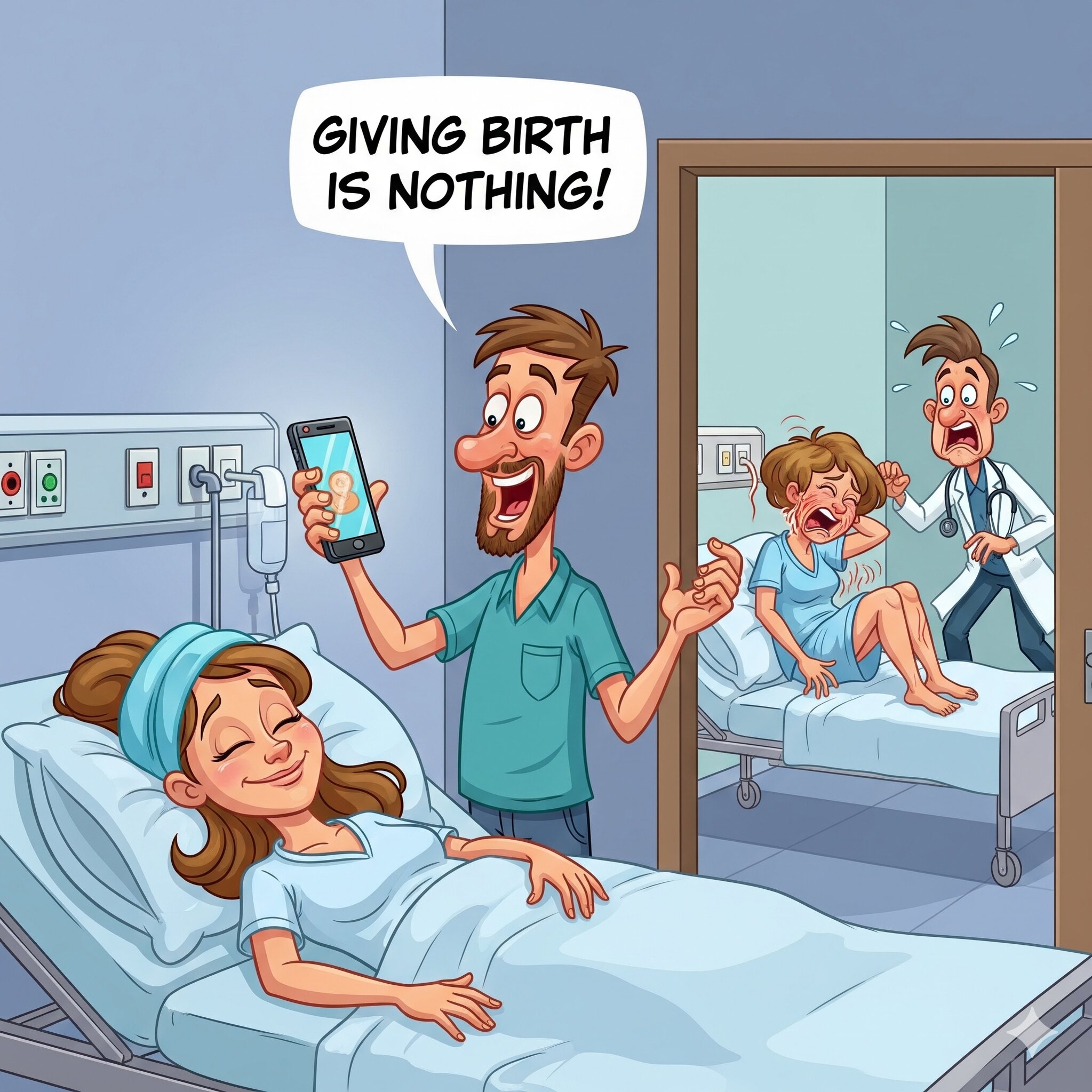 Vợ anh nằm trên giường sinh, thấy nhẹ hẳn. Anh Hùng thì vẫn bình thường, thậm chí còn... livestream khoe: – Đau đẻ có gì đâu, anh em cứ mạnh dạn lên!