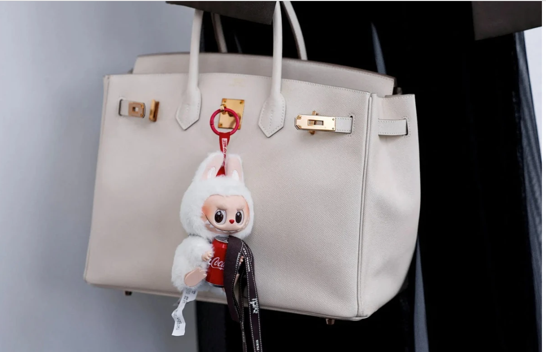 Labubu treo trên túi xách Hermès ở Bắc Kinh, Trung Quốc. Ảnh: Reuters.