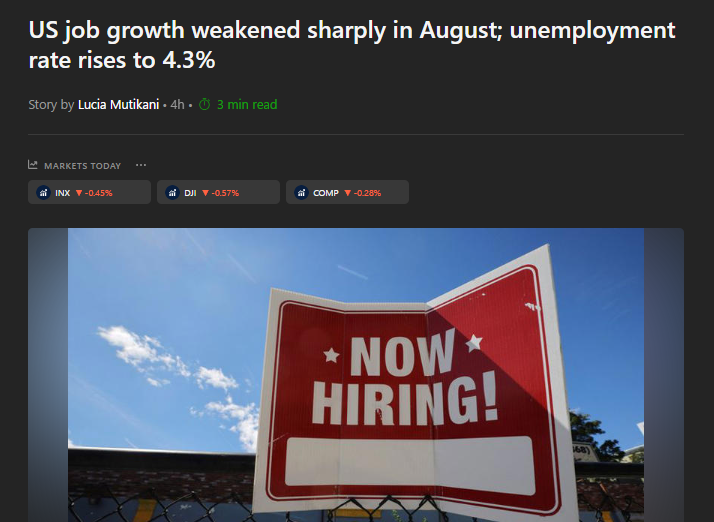 Old  Default Tỷ lệ thất nghiệp tăng lên 4,3%; Tăng trưởng việc làm tại Mỹ giảm mạnh trong tháng 8