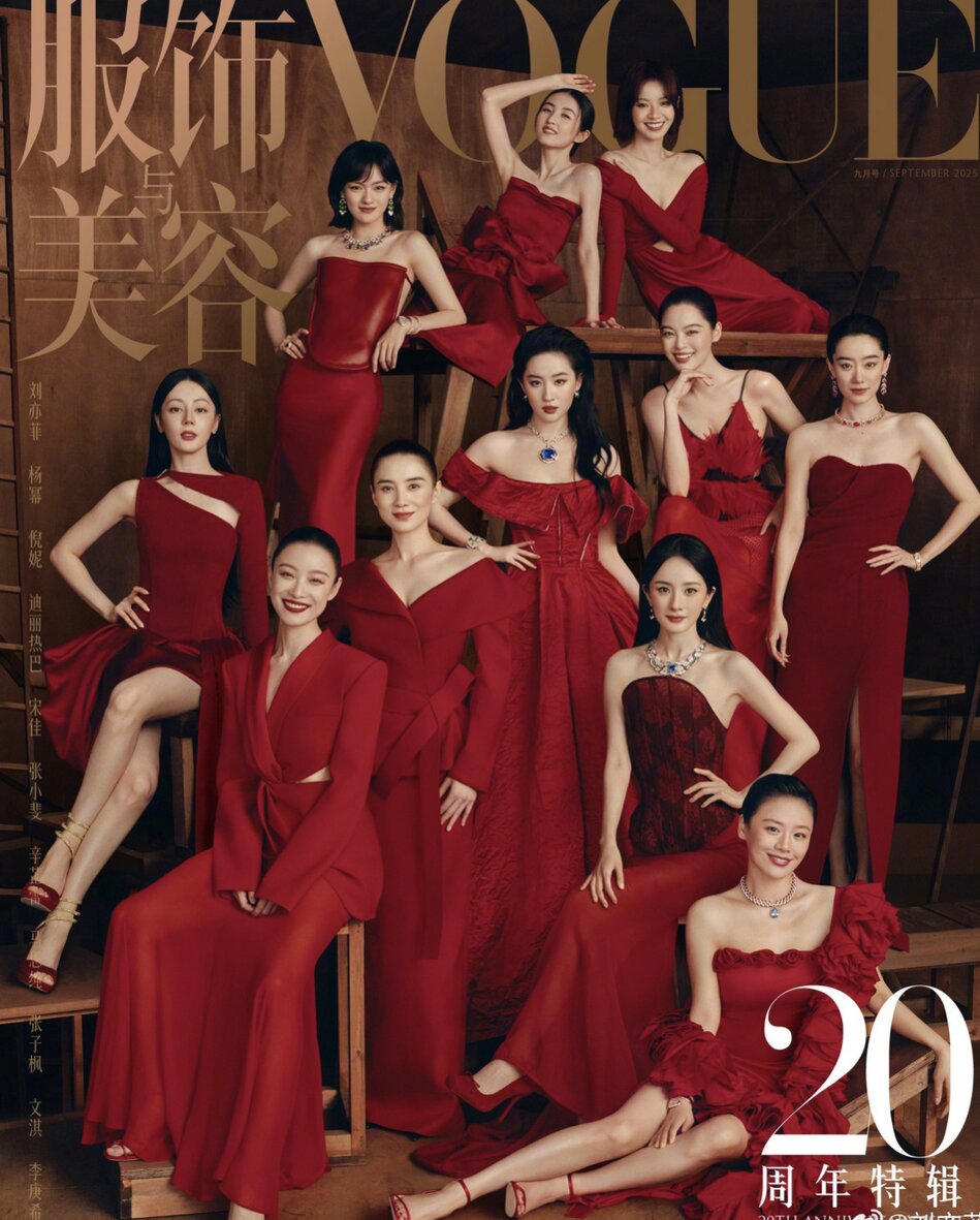 Trang Sina đưa tin mới đây Lưu Diệc Phi, Dương Mịch cùng các nghệ sĩ như Địch Lệ Nhiệt Ba, Tống Giai, Nghê Ni, Tân Chỉ Lôi, Tân Chỉ Lôi, Lý Canh Hy, Trương Tử Phong, Mã Tư Thuần, Trương Tiểu Phỉ, Văn Kỳ đã trở thành gương mặt trang bìa của tạp chí Vogue China số tháng 9, đồng thời cũng là số báo kỷ niệm 20 năm phát hành.