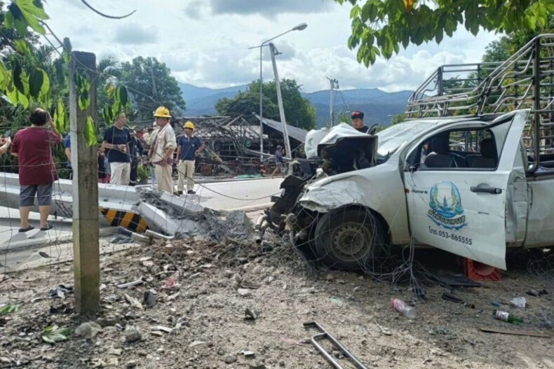Chiều 9/9, theo Bangkok Post, một chiếc xe bán tải chở nước đóng chai đã lao vào cột điện cao thế trên đường Nhong Hor (Quốc lộ 1366), huyện Muang, tỉnh Chiang Mai.