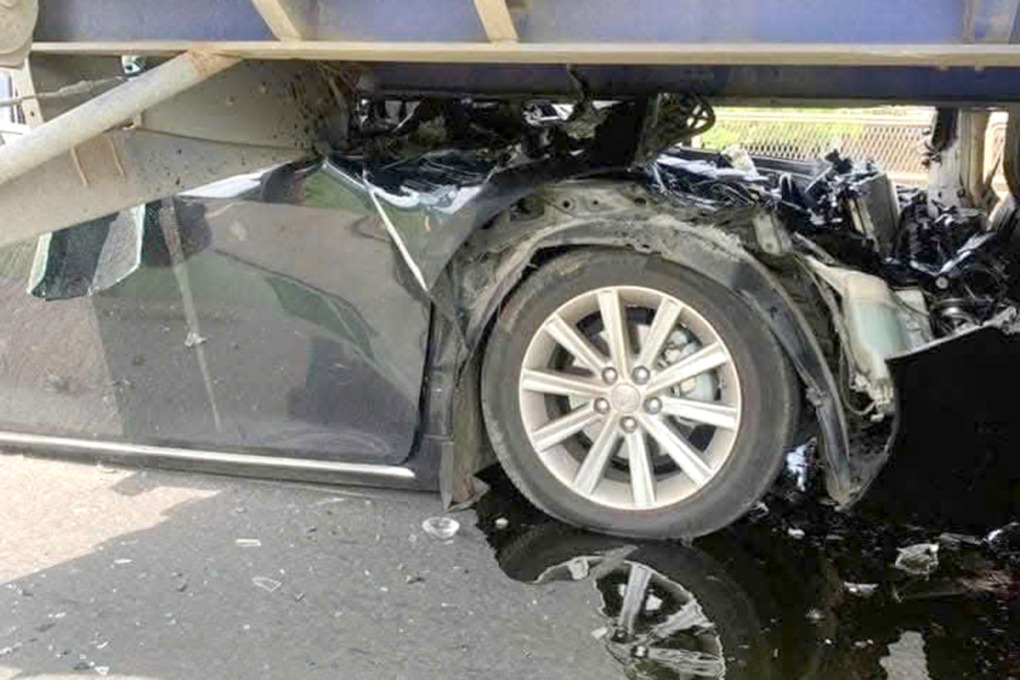 Sau va chạm, ông Sơn mở cửa đưa mẹ thoát ra ngoài, cả hai chỉ bị thương nhẹ. Hiện trường đầy mảnh vỡ, ôtô hư hỏng nặng, biến dạng hơn nửa thân xe.
