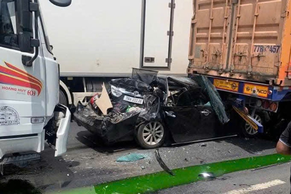 Khoảng 9h, ông Huỳnh Sơn lái ôtô 4 chở mẹ chạy trên quốc lộ 1, hướng ra xã Tuy An. Đến khu phố Chính Nghĩa, phường Bình Kiến (Đăk Lăk), ôtô bị xe tải tông từ phía sau, đẩy lao vào gầm xe đầu kéo phía trước, biến dạng phần đuôi.
