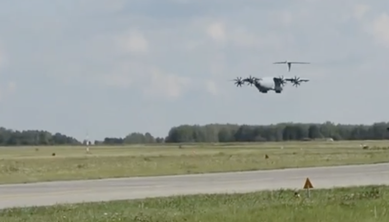 Cơ quan này cũng công bố đoạn video cho thấy một máy bay vận tải A400 của Pháp hạ cánh xuống sân bay Mazowiecki. Chiếc máy bay này chở vũ khí cho các máy bay chiến đấu Rafale.