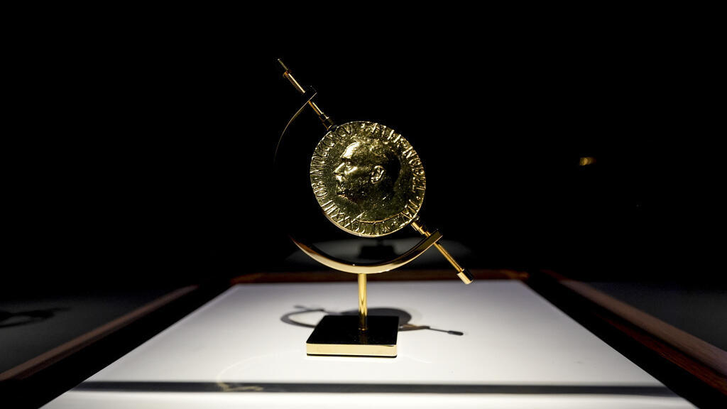 Hình minh họa: Huy hiệu biểu tượng giải Nobel Hòa bình. AP - Mike Stewart