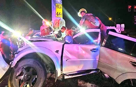 Theo tờ Khaosod, sự việc xảy ra vào khoảng nửa đêm ngày 6/9 trên đường cao tốc 347, thuộc tỉnh Ayutthaya, miền Trung Thái Lan. Một chiếc xe SUV hiệu Mitsubishi màu trắng bất ngờ mất lái, đâm mạnh vào cột điện trên dải phân cách. Cú va chạm dữ dội khiến chiếc xe gần như bị cắt đôi, toàn bộ phần bên phải biến dạng hoàn toàn. Người điều khiển, một người đàn ông 42 tuổi, bị mắc kẹt bên trong trong tình trạng nguy kịch.