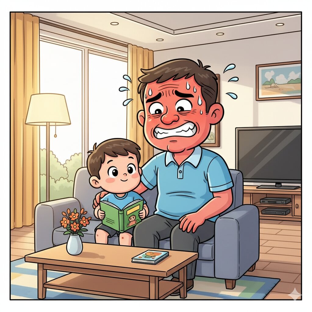 – À… à… cái đó là… bố… bố đang… tập thể dục cho đỡ mỏi chân thôi mà…