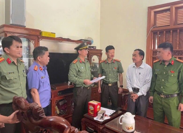 Cơ quan chức năng đọc lệnh bắt giữ Nguyễn Duy Niệm. Ảnh: Công an cung cấp