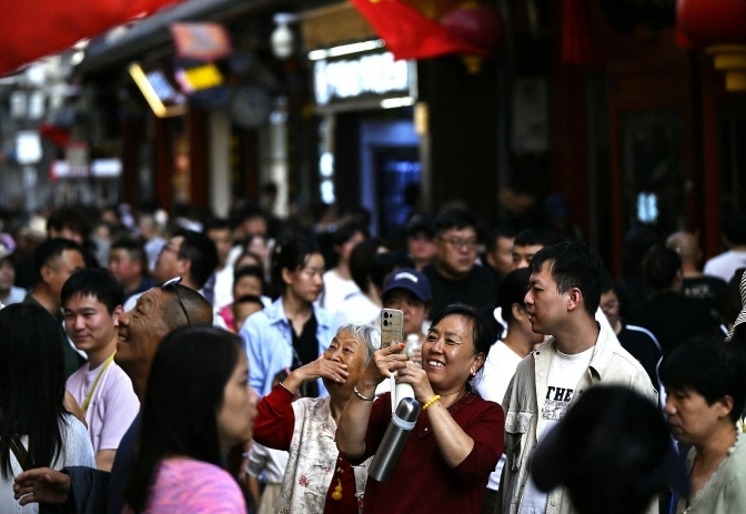 Người dân trên đường phố Bắc Kinh, Trung Quốc hôm 2/10. Ảnh: AFP