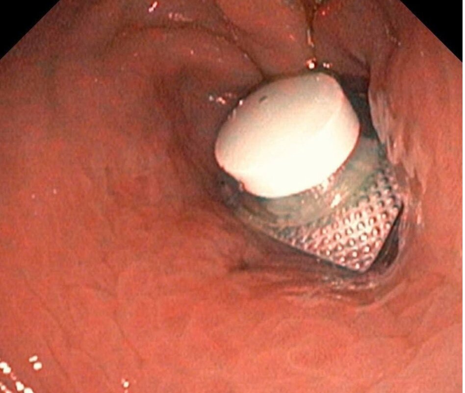 Trước đó, bệnh nhân nam 52 tuổi nhập viện cấp cứu trong tình trạng đau bụng dữ dội. Qua thăm khám lâm sàng, bệnh nhân được bác sĩ chỉ định nội soi dạ dày và phát hiện tại môn vị có dị vật là viên thuốc còn nguyên vỏ, gây trầy xước niêm mạc dạ dày.