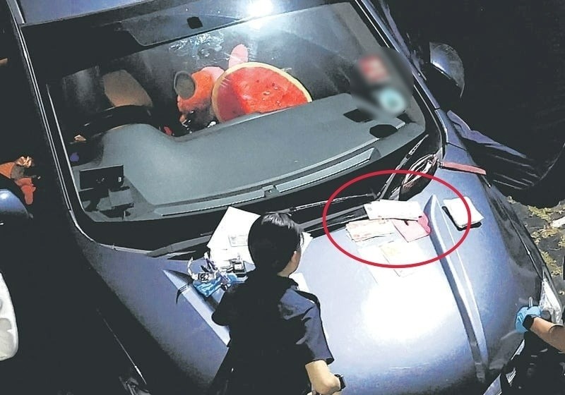 Bí ẩn chiếc xe đậu nhiều giờ không rời bãi, bên trong là thi thể người phụ nữ cùng nhiều tiền mặt và phong bao lì xì. Ảnh: Shin Min Daily News