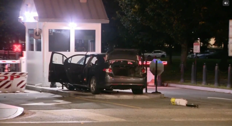 Hiện trường ôtô lao vào cổng an ninh của ở phía nam Nhà Trắng đêm 21/10. Ảnh: WGTN