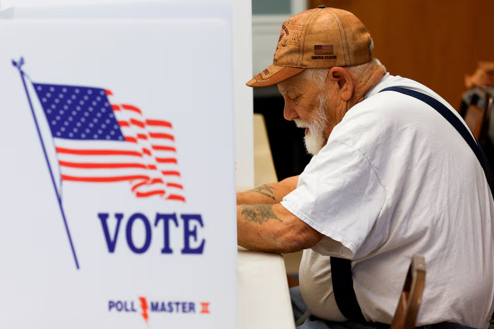 Một người đàn ông bỏ phiếu tại nhà thờ St Andrew trong cuộc bầu cử tổng thống Hoa Kỳ năm 2024 vào Ngày bầu cử ở Erie, Pennsylvania, Hoa Kỳ, ngày 5 tháng 11 năm 2024. REUTERS/Shannon Stapleton Mua quyền cấp phép