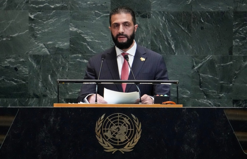 Tổng thống lâm thời Syria phát biểu tại Đại hội đồng Liên Hợp Quốc ở New York ngày 24/9. Ảnh: AFP