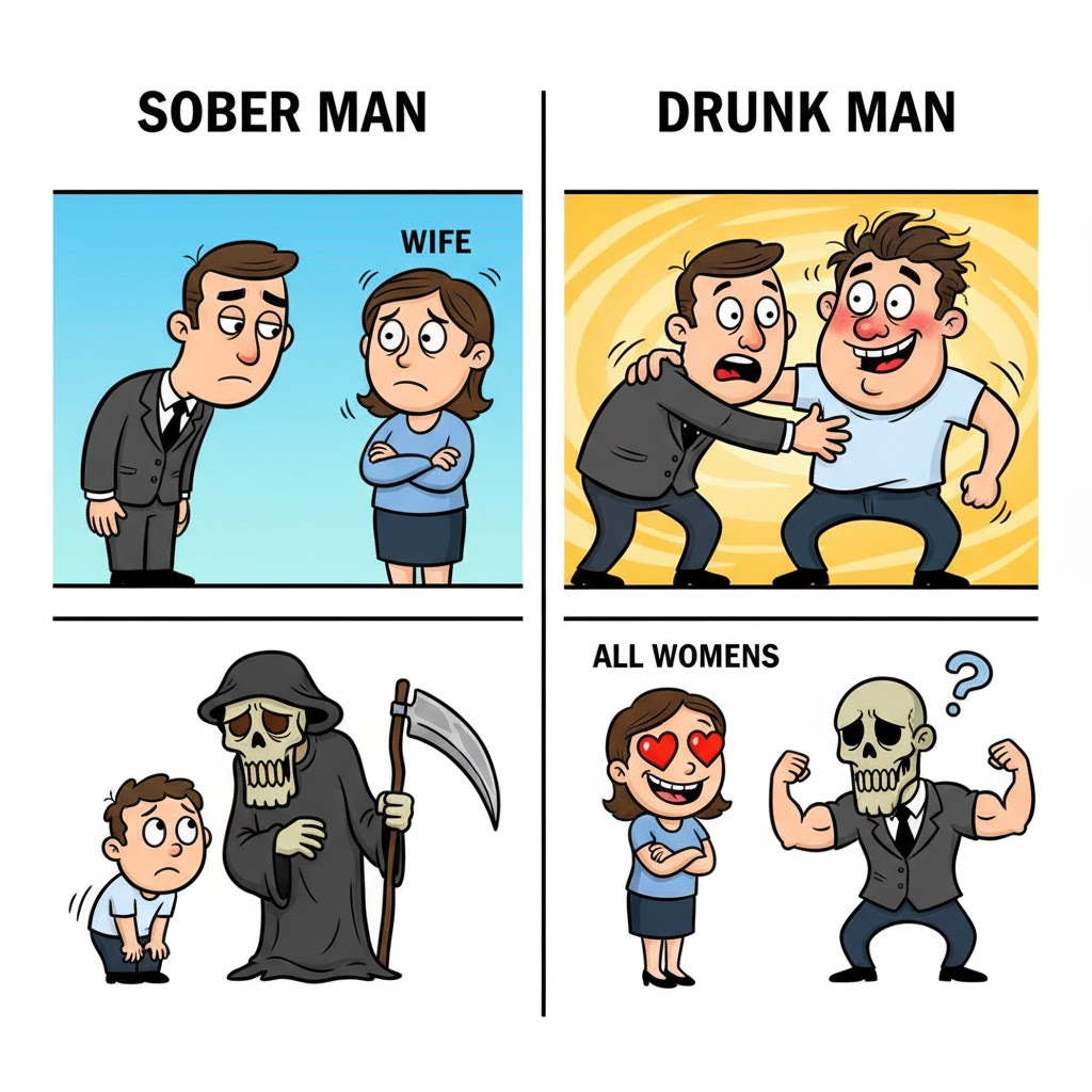 13. Cả đàn ông tỉnh và đàn ông say đều tin là mình không thể say.