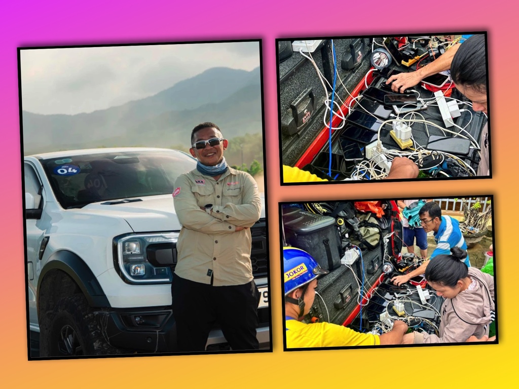 Anh Mẫn vốn mê lái xe địa hình, thích cắm trại, hay chui vào rừng hoặc những nơi hoang vắng với anh em trong CLB bán tải PNF ở TP.HCM. Để có điện nấu nướng, chiếu sáng, sạc thiết bị, anh tự set-up một hệ điện chuẩn cho chiếc xe đi dài ngày: pin lithium, bộ chuyển từ 12V sang 220V, công suất 2.000W. Bình thường, trạm điện đó chỉ phục vụ những buổi cắm trại, những đêm ngủ rừng với bạn bè. Chỉ cần nổ máy xe là pin tự sạc, rất tiện lợi. Nhưng trong những ngày nước dâng, chính “đồ chơi” ấy lại trở thành phao cứu sinh cho hàng chục gia đình. Đến chỗ nào mất điện, anh nổ máy, mở ổ cắm, ai có điện thoại, đèn pin, pin dự phòng… cứ thế cắm vào. Bà con vừa sạc vừa nói cười rộn ràng, có người tranh thủ hỏi tin tức, nghe dự báo, đọc thông báo sơ tán; có người chỉ cần vài phút để gọi về quê cho cha mẹ bớt lo. Trong những chuyến đi tiếp theo đến Khánh Hòa, Đắk Lắk, Hòa Thịnh (Phú Yên cũ), trạm sạc 2.000W trên thùng xe bán tải lại tiếp tục chạy hết công suất, đổi lấy sự yên tâm cho bao nhiêu người đang mắc kẹt trong biển nước.