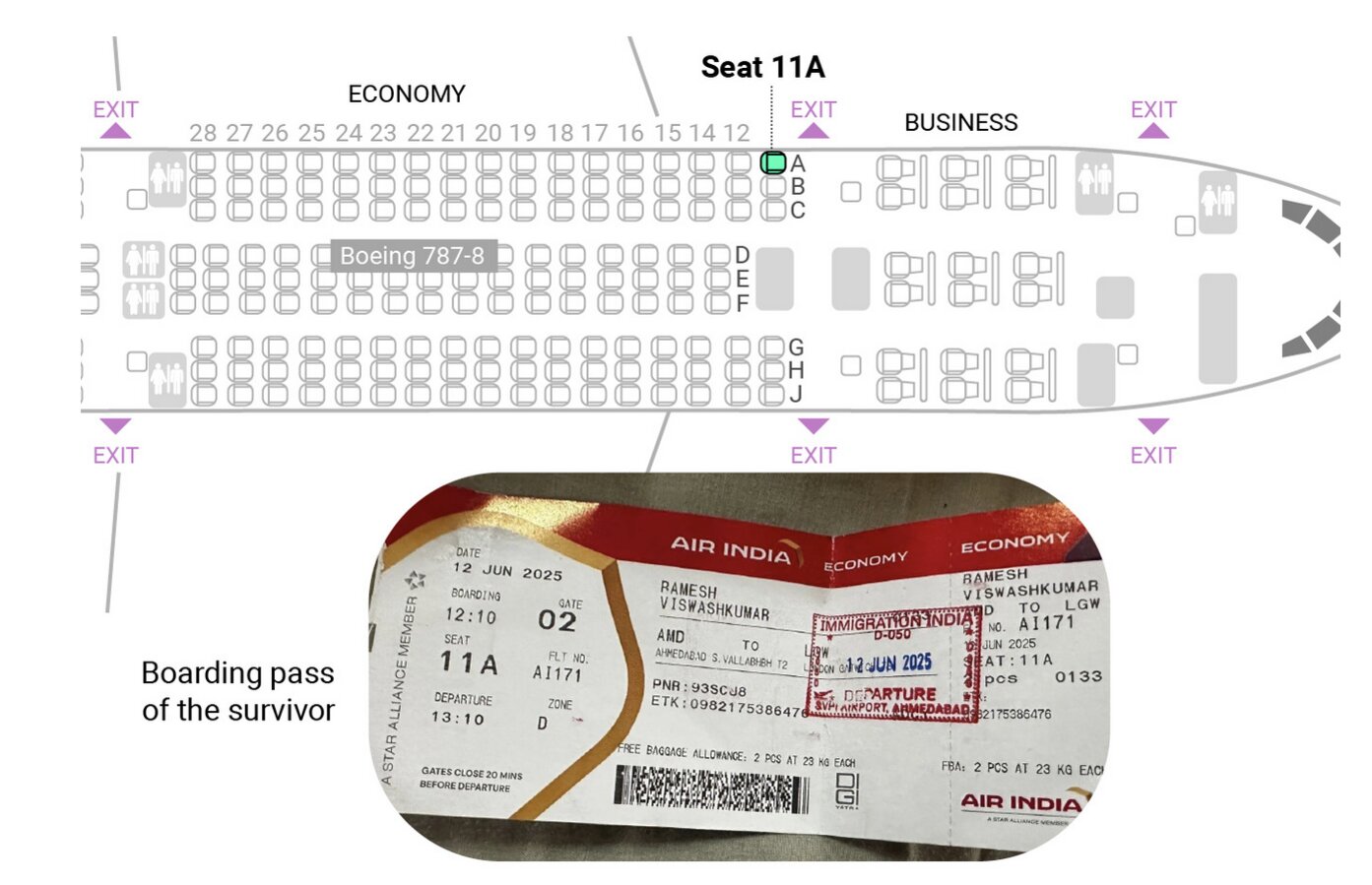 Đáng chú ý, đây không phải là lần đầu tiên ghế 11A gắn liền với một ca sống sót kỳ diệu. Tờ Daily Mail dẫn lại câu chuyện của ca sĩ người Thái Lan Ruangsak Loychusak, người từng thoát chết trong thảm kịch hàng không năm 1998 khi chuyến bay TG 261 của Thai Airways rơi xuống một vùng đầm lầy ở tỉnh Surat Thani. Khi đó, chiếc máy bay đang trên hành trình từ Bangkok đến miền Nam Thái Lan thì mất kiểm soát lúc chuẩn bị hạ cánh, khiến 101 trong tổng số 132 hành khách cùng 14 thành viên phi hành đoàn thiệt mạng, 45 người bị thương. Loychusak cũng ngồi ghế 11A và sống sót. Khi đọc tin về vụ tai nạn của Air India, anh cho biết mình “rợn người” vì sự trùng hợp đến ám ảnh.