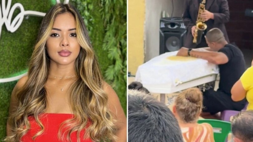 Alex Leandro Bispo dos Santos ôm quan tài vợ - Maria Katiane Gomes da Silva. Ảnh: G1