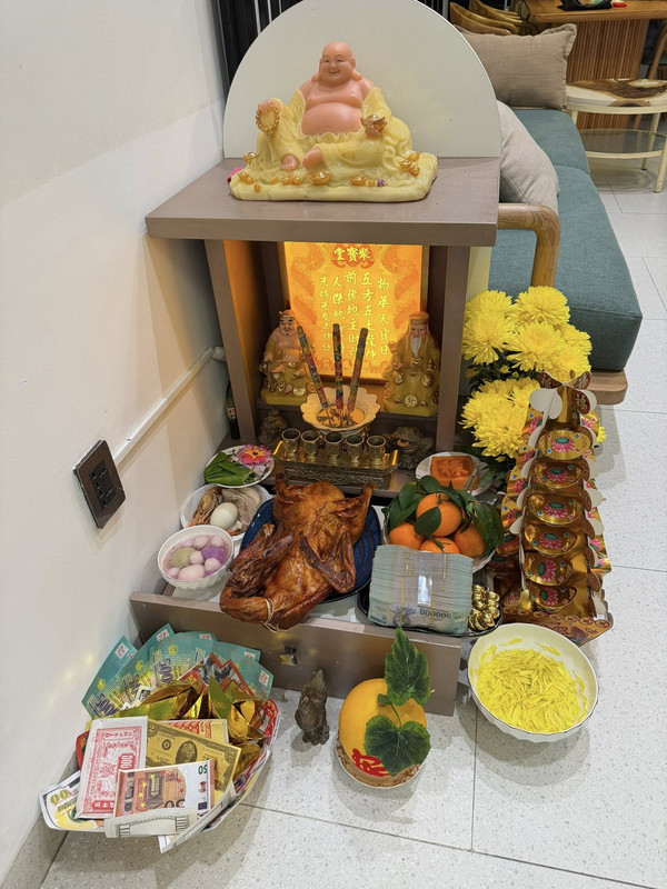 Gây chú ý hơn cả là mâm cúng của nhà Lý Bình và Phương Trinh Jolie. Ngoài những lễ vật cơ bản, điểm nhấn là đĩa tiền mặt xếp thành cọc và nhiều chiếc nhẫn vàng đặt trang trọng phía trước bàn thờ Thần Tài. Hình ảnh nhanh chóng thu hút sự quan tâm trên mạng xã hội. Theo quan điểm của nhiều người, cách bày biện tiền vàng như thế này là cách thể hiện mong muốn một năm kinh doanh thuận lợi, sung túc.