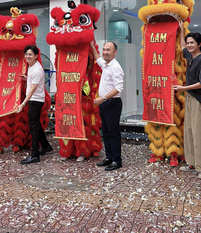 Ngô Kiến Huy, Tiến Luật và Huỳnh Phương tưng bừng chọn mùng 10 Tết để khai trương cửa hàng kinh doanh riêng (ảnh: FBNV)