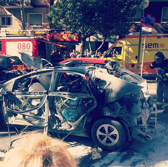 Chiếc Toyota Prius phát nổ tại Tây Ban Nha.