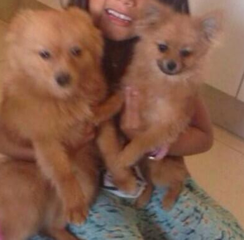 [Con gái Tevez cùng hai chú cún cưng. Ảnh: Twitter.