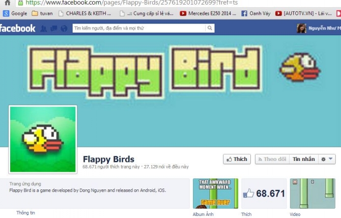 Game Flappy Bird có tới 68.671 like chỉ trong một thời gian ngắn
