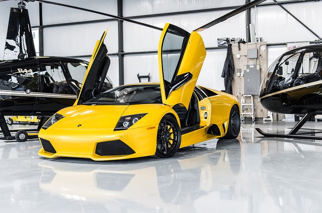 Với trang bị lazăng Brixton cùng màu vàng đặc trưng, hai siêu xe Lamborghini Murcielago và Gallardo thực sự nổi bật bên cạnh hai chiếc trực thăng màu đen.