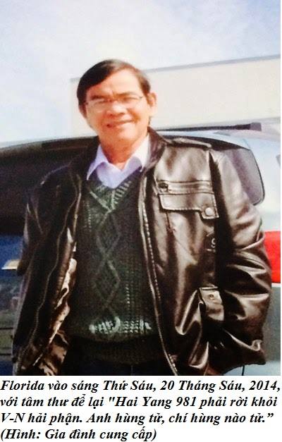 Hai Yang 981 là giàn khoan Hải Dương số 981 mà Bắc kinh đã ngang ngược kéo tới vùng biển của Việt Nam hôm 1 tháng 5. Ông Hoàng Thu đã đi như lời cuối ông dặn dò bà ngoại các cháu.