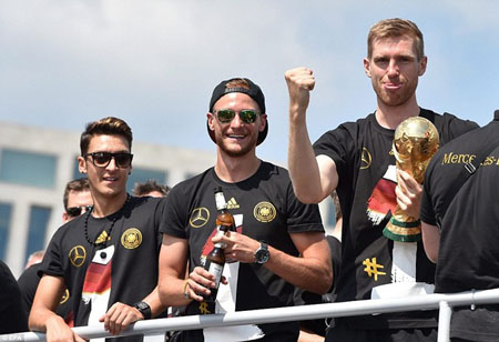 Đội tuyển Đức đã không tận hưởng không khí vô địch World Cup trong 24 năm qua. Chính vì lẽ đó, họ đã ăn mừng tưng bừng trong buổi lễ mừng công tại quảng trường ở thủ đô Berlin.