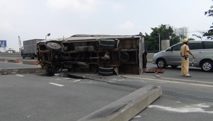 Old  Default Xe tải tông dải phân cách, lật ngang trên cầu Sài Gòn