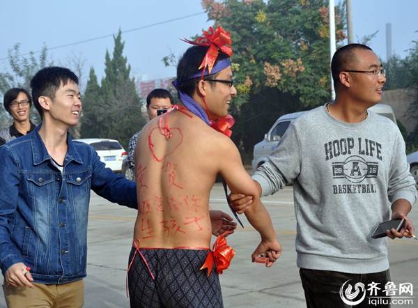 Gần đây, trên các con phố nào nhiệt ở Liêu Thành, Sơn Đông, Trung Quốc. Một nhóm thanh niên đã diễn lại cảnh cưới xin ngày xưa với chú rể gây sốc bằng cách chỉ mặc duy nhất bộ đồ lót phụ nữ, tất lưới rách, áo nịt ngực, tay cầm cải thảo diễu trên phố.