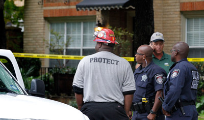 Một số cảnh sát ở Dallas đang đứng trước nhà một người bị tình nghi nhiễm Ebola. (Hình: Getty Images)