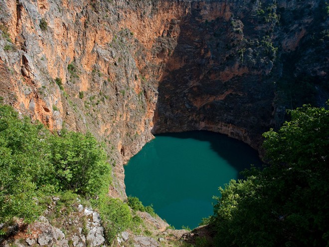 Hồ Đỏ (Imotski, Croatia): Đây là một hồ đá vôi nằm trong hố sụt lớn thứ 3 thế giới với độ sâu 518 m. Vách hồ có trữ lượng ôxit sắt cùng màu nâu đỏ của đá làm cho hồ có tên gọi là hồ Đỏ.