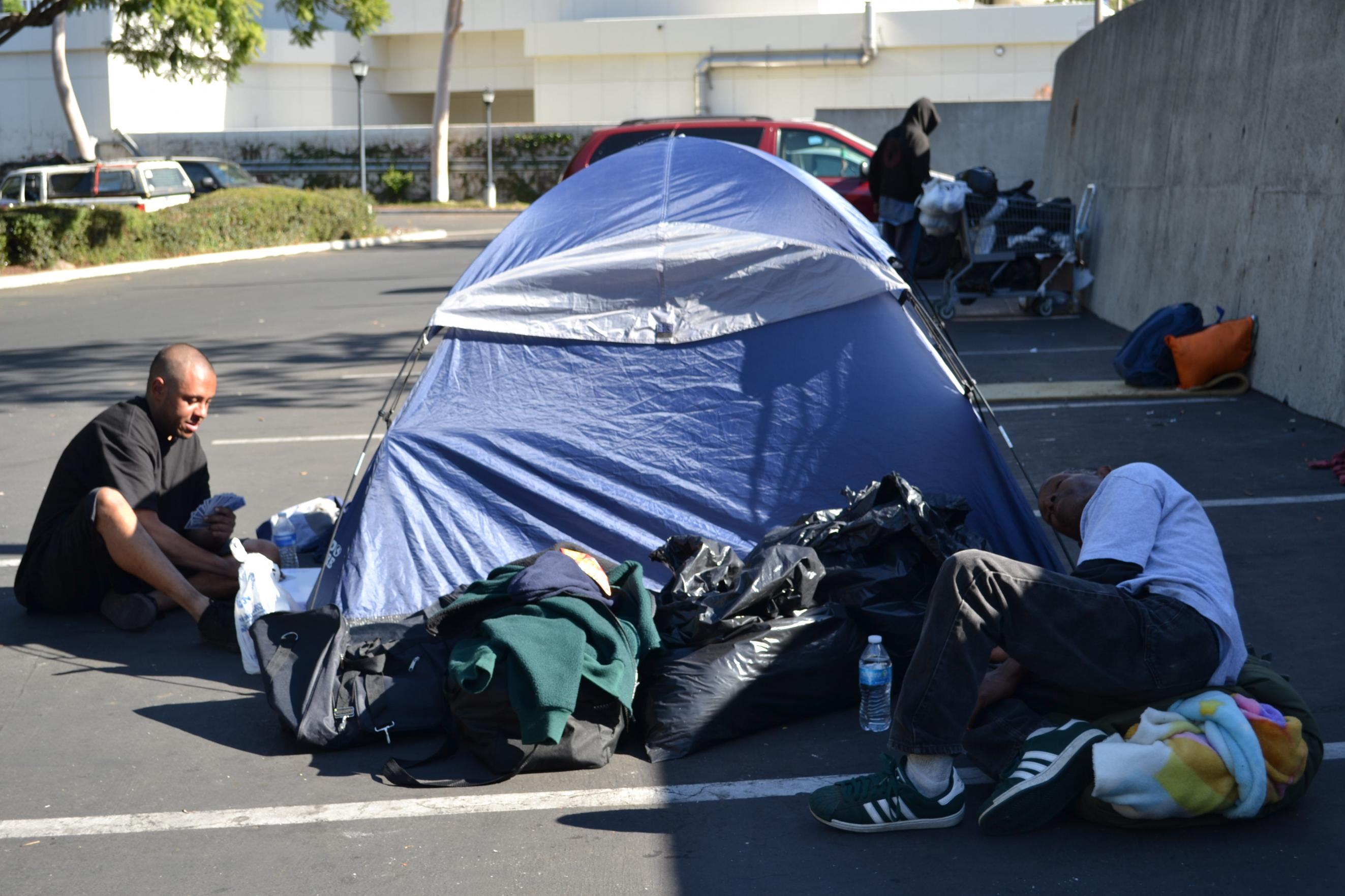 Một số gia đình cư ngụ trong những cái lều nhỏ ngoài trời khu Santa Ana Civic Center