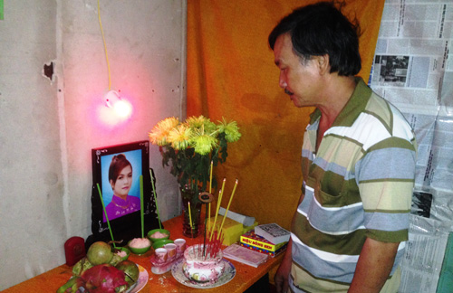 Suốt cả ngày nay (3/12), ông Nguyễn Ngọc Minh, cha của chị Ngân nằm ủ rủ trong căn nhà dưới gầm cầu Dừa, đường Bến Vân Đồn, quận 4, TP HCM) để trông chờ cậu con trai lớn vừa sang Hàn Quốc đưa thi thể em mình về.