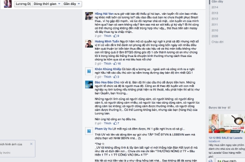 Phản hồi của các CĐV trên Facebook của Thành Lương