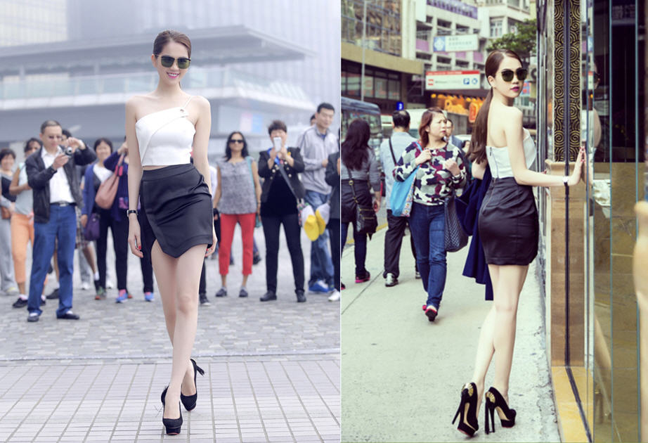 Ngọc Trinh nổi bật trên đường phố Hồng Kông.
