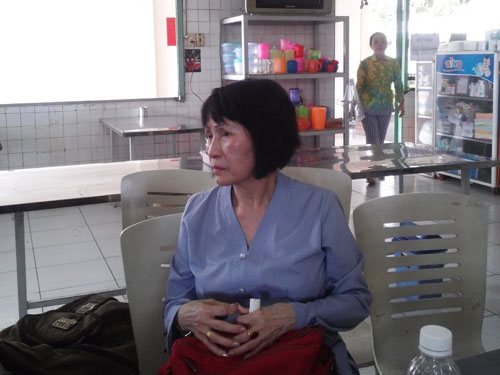Bà Cẩn vẫn trong bộ áo nâu ṣng (là vợ và mẹ của 5 nạn nhân) với vẻ mặt mệt mỏi, ốm hẳn đi so với ngày đầu tai nạn mới xảy ra, khiến ai nh́n cũng xót ḷng.