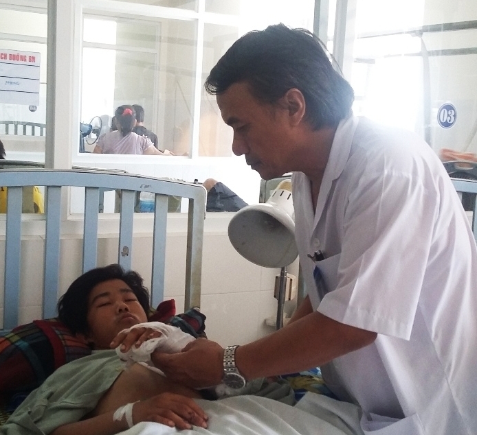Bác sĩ kiểm tra bàn tay của bệnh nhân Danh.