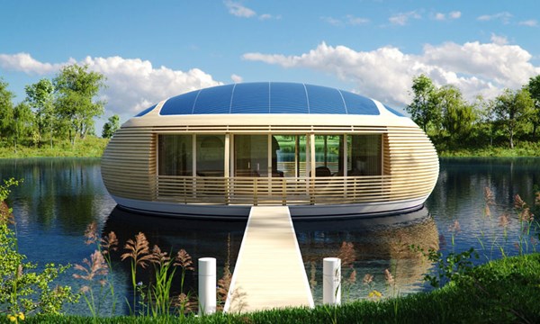 Ngôi nhà nổi thông minh trên mặt nước có hình viên sỏi