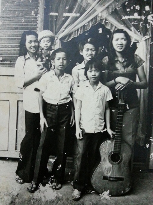 Bức ảnh độc thời bé khi Dương Triệu Vũ chưa đầy một tuổi được mẹ bế trên tay còn Hoài Linh đứng phía sau.