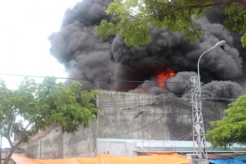 Ngay sau đó, lửa bốc lên ngùn ngụt, lan ra khắp nhà xưởng. Người dân tại đây cho biết, tiếng nổ lớn làm rung chuyển cả khu phố. Thời tiết nóng bức kèm gió to làm cho ngọn lửa lan nhanh hơn.